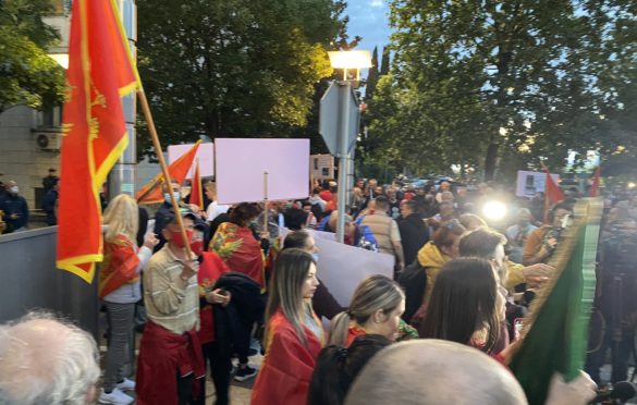 Okupljeni skandiraju brojne uvrede na račun najistaknutijih čelnika Vlade, posebno Dritana Abazovića.