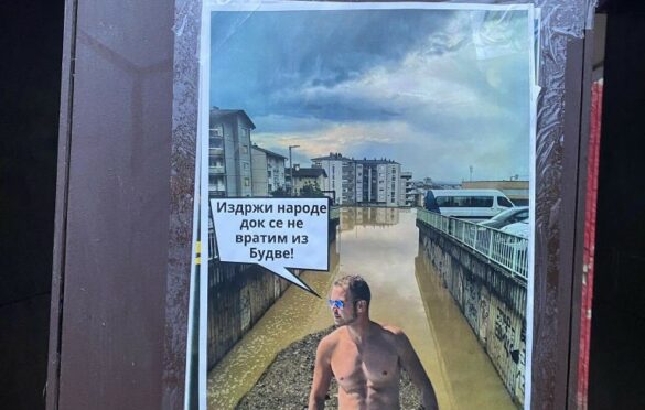 Plakati na kojima je u fotomontaži stavljena slika gradonačelnika Banjaluke Draška Stanivukovića sa plaže, a u pozadini slike bujičnih poplava od prije nekoliko dana, oblijepljeni su u više banjalučkih naselja.