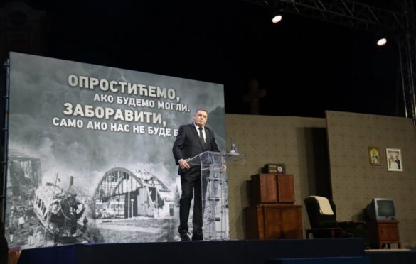 “Ne vjerujem im i nikada im neću vjerovatno. Mi smo narod stradalnik koji su nazvali kolateralnom štetom. Nismo kolateralna šteta, naši ljudi i naša djeca su ginuli sa traumama. Onda nam dođu ovdje i kažu nam da treba da zaboravimo i idemo dalje. Moraju da shvate da srpski narod čine i živi i mrtvi i oni koji će se roditi i ovdje doći. Zato je naša odgovornost prema onima koji će doći, časno se odnosimo baš danas i nikada ne zaboravimo šta su nam radili”, kaže Dodik i poručuje: Neću im se klanjati niti ću misliti da su dobri.