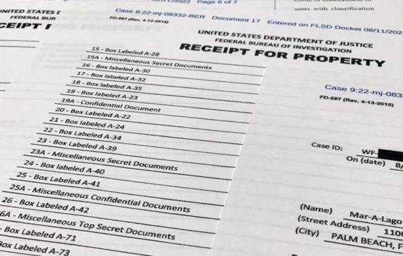 Novine su objavile da su agenti FBI-ja iz Trumpovog odmarališta i rezidencije u Palm Beachu na Floridi odnijeli oko 20 kutija sa dokumentima, uključujući registratore, setove povjerljivih vladinih materijala, fotografije i najmanje jednu rukom pisanu poruku.