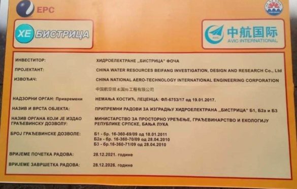 Kineska nacionalna aerotehnološka kompanija za međunarodni inženjering (AVIK) u utorak je počela sa izgradnjom energetskog sistema Hidroelektrane Bistrica, koji će se sastojati od tri stepenasto raspoređene elektrane ukupne vrijednosti 102 miliona evra, i ono što je zanimljivo jeste da su kineske kompanije praktično “poklopile” izgradnju svih većih energetskih kapaciteta u Bosni i Hercegovini.