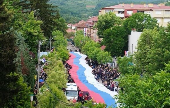 Nekoliko hiljada građana okupilo se jutros ispred zgrade Skupštine opštine Zvečan, a razvili su zastavu Srbije dugu 250 metara, javlja izveštač Tanjuga.