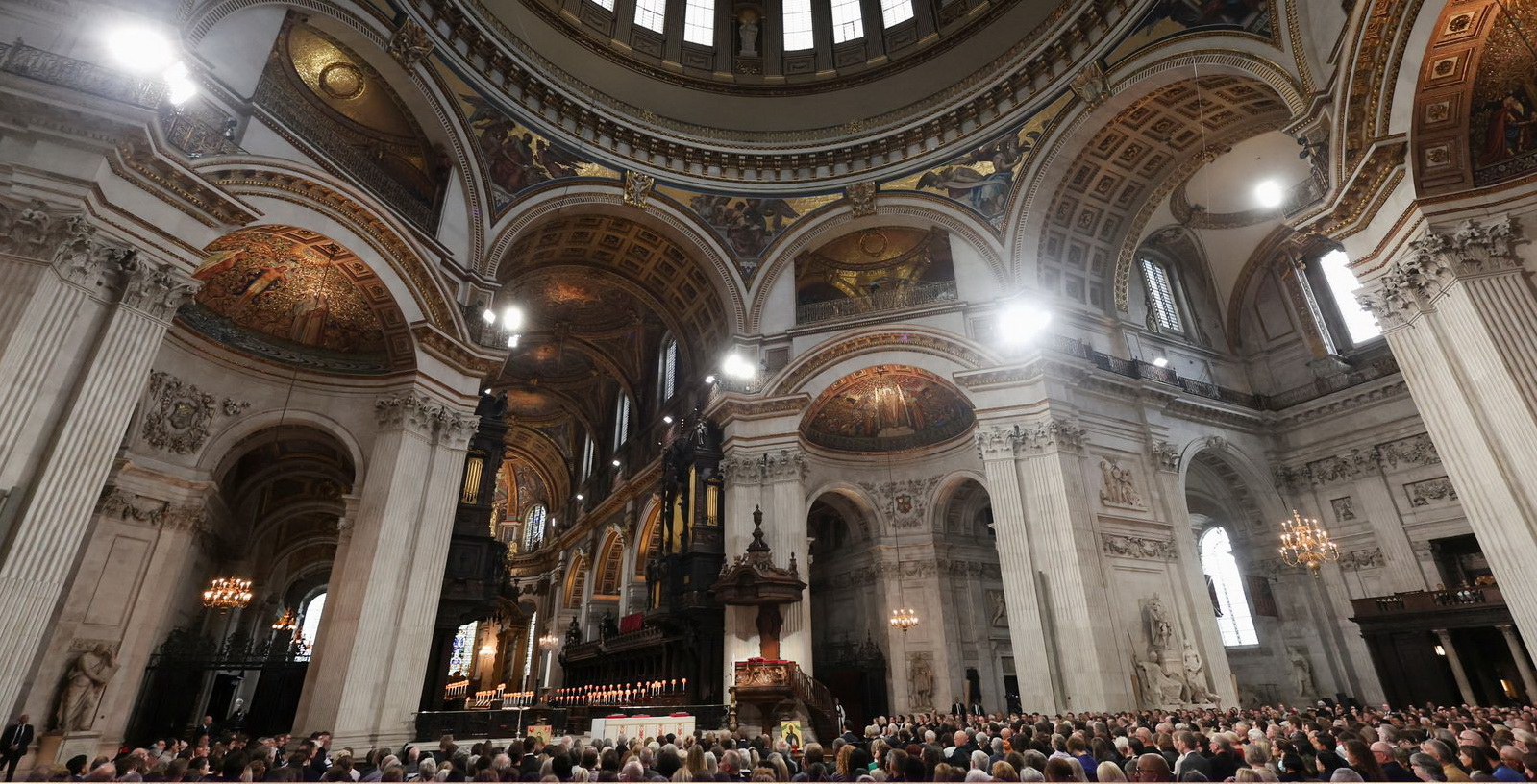 Komemorativna služba povodom smrti kraljice Elizabete Druge održana je u Katedrali Svetog Pavla u Londonu, u prisustvu nove premijerke Liz Tras, a tom prilikom je intonirana prva zvanična interpretacija himne “Bože, čuvaj kralja”.