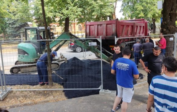 Dok je trajala drama oko automobila, na nekadašnjoj zelenoj površini sa koje je jutros uklonjena živica, počelo je asfaltiranje dionice koja bi trebalo da bude sastavni dio pristupnog puta prema planiranoj građevini u ulici Sime Šolaje.