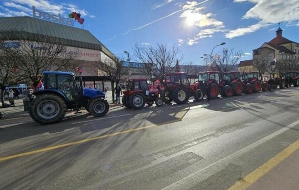 Okupili su se na traktorima na raskrsnici u Rosuljama odakle kreću prema Gradskoj upravi da protestuju zbog neisplaćenih subvencija.
