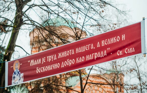 Aleja Svetog Save ukrašena je natpisima sa mudrim riječima prvog srpskog arhiepiskopa, svetitelja i prosvetitelja Svetog Save.