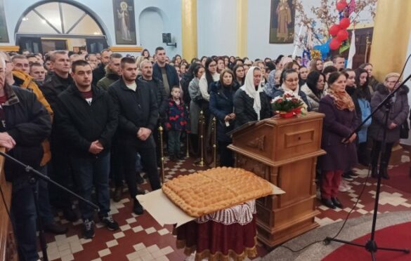 U ugljevičkom hramu Svete Petke Paraskeve služena je božićna liturgija, a mnogobrojni vjernici su nakon toga lomili veliku božićnu česnicu koja je djelo lokalnih pekara.