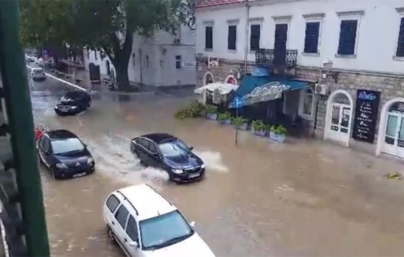 Za 20 minuta ulice grada bile su blokirane vodom, saobraćaj je bio usporen, a jak vjetar lomio je grane drveća.