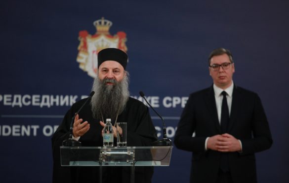 Njegova svetost patrijarh srpski Porfirije i predsjednik Srbije Aleksandar Vučić istakli su tokom sastanka u Beogradu veliku zabrinutost u vezi sa situacijom u Ukrajini i izrazili nadu da će sukobi biti brzo okončani.