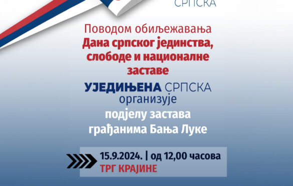 Ujedinjena Srpska organizovaće sutra, povodom obilježavanja Dana srpskog jedinstva, slobode i nacionalne zastave, podjelu zastava građanima Banjaluke.