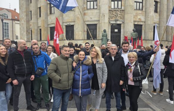 Članovi Gradskog odbora Ujedinjene Srpske Banja Luka okupili su se danas kako bi pružili podršku kandidatu SNSD-a za predsjednika Republike Srpske, Siniši Karanu, na predstojećim prijevremenim izborima.