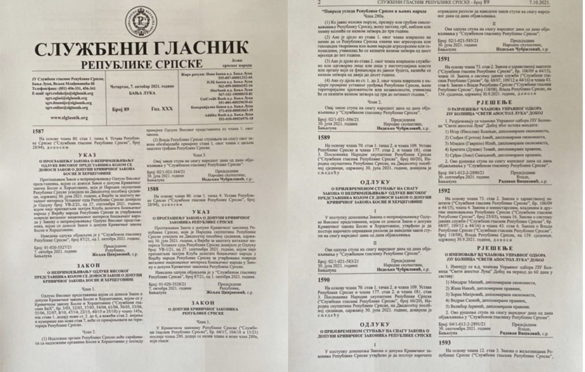“Proglašavam zakon o neprimjenjivanju odluke visokog predstavnika kojom se donosi zakon o dopuni krivičnog zakona BiH koji je Narodna skupština RS usvojila na dvadesetoj posebnoj sjednici održanoj 30. jula 2021. godine”, navedeno je u ukazu Željke Cvijanović. U članu 1. se kaže da se “odluka visokog predstavnika neće primenjivati na teritoriji RS”.