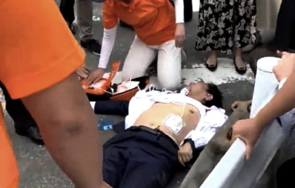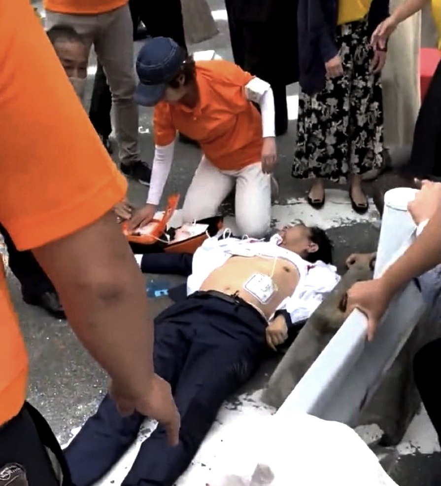 Glavni sekretar kabineta Hirokazu Macuno izjavio je da ne zna u kakvom je Abe stanju nakon napada, a novinska agencija Kjodo i NHK preneli su da je Abe (67) bio bez svesti i u stanju srčanog zastoja, kada je prebačen u bolnicu.