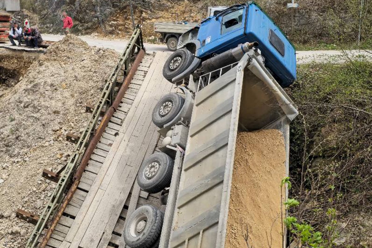 Na magistralnom putu M15 Ključ – Sanski Most, na lokalitetu Banjice, došlo je do urušavanja drvenog mosta pod teretnim vozilom.