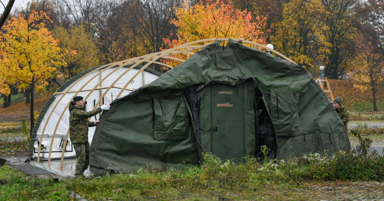 Hrvatska vojska započela je danas postavljanje šatora za smještaj pacijenata ispred Kliničke bolnice “Dubrava” u Zagrebu.