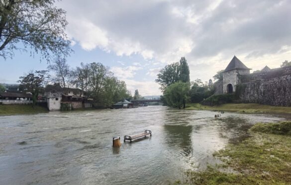 Kao što se vidi na slikama i video snimku, rijeka je nadošla, mutna je i brza.