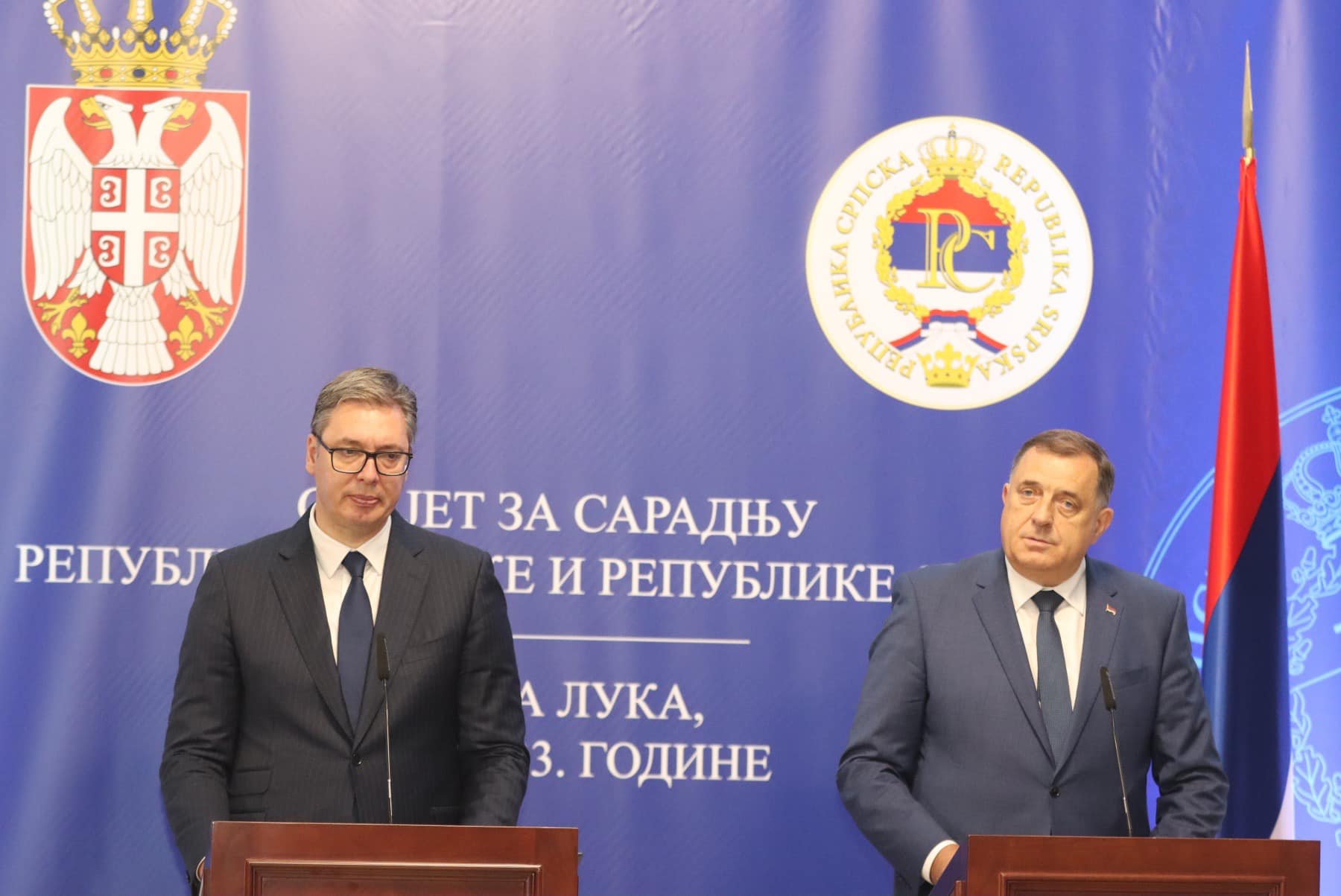 – Prije samo nekoliko dana zajednički smo obeležavali Sretenje, radovali se našem prazniku, veselili se. Danas je situacija mnogo drugačija i neuporedivo teža, ali naš život, naš posao je takav da Srbija i obaveza Srbije i svih nas je da uvek budemo uz Republiku Srpsku. Zato i večeras, kada je najteže, idemo u Banjaluku da pružimo podršku našem narodu, da pokušamo da utičemo na to da sve odluke koje se donose na kraju dovedu do smirivanja situacije, do smirivanja tenzija – naveo je Vučić u objavi na društvenim mrežama, iz aviona na putu za Banjaluku.
