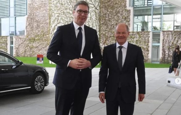 Predsednik Srbije Aleksandar Vučić i njemački kancelar Olaf Šolc se obraćaju posle sastanka u Berlinu.”Zajednički smo konstatovali u našim bilateranim, pre svega ekonomskim odnosima. Imamo veliki skok u odnosu na prošlu, rekordnu godinu”, rekao je Vučić.”Nemačka je najveći partner Srbije, a i Srbija Nemačkoj na Zapadnom Balkanu”.”Važne su nam reči kancelara, koji je danas više puta ponovio da je uveren u evropsku budućnost svih zemalja Zapadnog Balkana. Rekao je, citiram ga, da to nije fatamorgana, kada vam se nešto pričini, a onda nestane”, rekao je.
