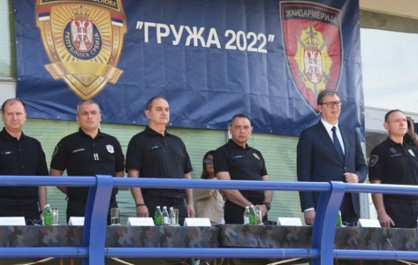 Predsednik Srbije Aleksandar Vučić prisustvuje pokazno-taktičkoj vežbi Ministarstva unutrašnjih poslova “Gruža 2022”.